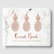 Den här snyggten har gästen bok ett utseende på en vit marmorbakgrund som ser ut som ananas vid ro guld (inte som guld). Bok säger "Gäst Bok" i trendigets typografi, och har en plats där du kan lägga till titeln på ditt evenemang.