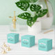 En stilren bröllopspresentbox i rik robinäggblå färg med en "Tack"-bandersaccent ovanför parets monogramnamn och bröllopsdatum i klassisk typografi. All text är helt anpassningsbar. Denna kubformade box i den signaturfärgade akvatonen ger en polerad presentation för choklad, godis eller små gåvor vid er mottagningsdessertbord eller gästpresentstation.
