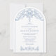 Dyk in i elegans och romans med våra exklusiva klassiska Rococo bröllopsinbjudningar. Skräddarsydda med precision, dessa inbjudningar har en harmonisk blandning av en enkel vit bakgrund med lockelsen av en stor blå utsmyckad valvdesign. Vår anpassningsbara bröllopsmall låter dig ge din personliga prägel på varje detalj. Börja din resa mot för evigt med sofistikering och stil.