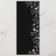 Elegant modern boho svart och röd bröllopsmeny med silverrep hjärta och förgylld blomster spets.