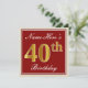 Elegant, röd, faux Guld 40:e födelsedagen; anpassa Inbjudningar