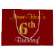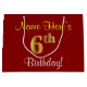 Elegant, röd, faux Guld 6e Birthday + eget namn
