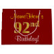 Den här enkla presentsäcksdesignen i eleganten innehåller ett personlig som "Namehär's 92 Birthday!" (med "92:a" som har ett utseende som påminner om guld och utseende) på en röd färgad. Namn är i skriptliknande gult-färgad och kan vara personlig. En sådan här personlig-födelsedagspressepåse skulle kanske kunna användas när en present eller gåva till någon som firar sin nittio andra födelsedag är ge. [~Z0000253]