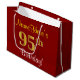 Den här enkla presentsäcksdesignen i eleganten innehåller ett personlig som "Namehär's 95 Birthday!" (med "95:e" som har ett utseende som liknar guld-utseende i utseende) på en röd färgad. Namn är i skriptliknande gult-färgad och kan anpassas. En sådan här personlig-födelsedagspressepåse skulle kanske kunna användas när en present eller gåva till någon som firar sin 95:e födelsedag är ge. [~Z0000253]