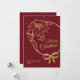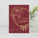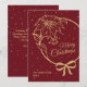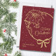 En vacker julhelg platt gratulationskort i vinrött. Denna älskvärda eleganta design har ett guldsnitt-teckensnitt, poinsettia och band. Lätt att anpassa med ditt familjenamn, år och anpassat meddelande på baksidan av kortet.