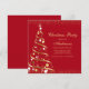 Elegant röd glänsande inbjudan till julgransfest. Denna design har en elegant vinterdesign med en gyllene glänsande julgran på en röd högtidsbakgrund. Perfekt för en formell företagsfest. Anpassa denna anpassade design med dina egna festdetaljer.