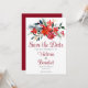 Den här vackra julsparsammet Rädda datuminbjudan har en vacker vattenfärg av röda poinsettianska blommor och gräs löv för helgdagarna. En elegant vinter inbjudan med en fetiös rött tillbaka för helgdagarna. Anpassa baksidan av detta poinsettia-kort med parets monogram initialer. blommigt.