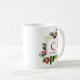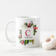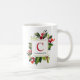 En vacker julblomma i vattenfärg med gröna blad och röda bär ramar in din eleganta anpassade monograminitial och namn som kan anpassas.