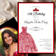 Denna eleganta röda och svarta 18-årsdebutinbjudan har en klänning, en röd tiara-krona och en svart kant med en anpassningsbar mall för att skapa ditt eget meddelande. Inbjudanmallen är anpassningsbar i listredigeraren och finns även som digital nedladdning som kan skrivas ut efter att du har anpassat den. Den snygga och minimalistiska designen är trevlig för ett formellt evenemang för att fira en viktig födelsedag.
