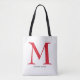 Enkel tote-väska är personlig med en stor monogram-initial i rött och ditt fullständiga namn nedan i svart. Perfekt för dig själv, för dina brudtärnor, bokklubb, examenspresent, födelsedagspresent eller någon annan tillställning. FLER färger i vår butik.