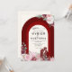 Denna vackert designade muslimska bröllopsinbjudan har en djupröd båge accentuerad med ömtåliga blomster Mönster som blandar traditionella element med modern elegans. Genom att framhäva parets namn speglar inbjudan värme och förfining, perfekt för en glädjefull firande.