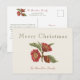Elegant Röd och Grönt Blommigt jul Helg Vykort
