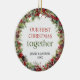 Denna enkla och snyggt Julgran-prydnad Vår första jul tillsammans - har en klassisk julvattenfärgsmand med röda hollbär och gräs-koner och gräs grenar och typografi av röd chic som säger "God jul" på vit bakgrund. VioletPrints ©