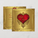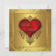 Rik gul damask med rött hjärta elegant röd och gul bröllopsinbjudan.