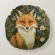 Elegant Röd Räv Och Grön Lövverk Rund Kudde