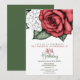 Hedra en otrolig livstid med tidlös blomsterprakt med denna Elegant röd ros och vit hortensia Dekorerad 90-års födelsedagsinbjudan. Lyxiga röda rosor symboliserar kärlek, firande och älskade minnen, medan mjuka vita hortensior ger en graciös och förfinad balans och skapar en verkligt klassisk och sofistikerad design.