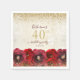 Elegant Röd ros Blommigt Guld 40:e födelsedag Part Pappersservett