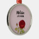 Ett utsökt röd ros blomstrar mot en mjuk rosa bakgrund, vilket utesluter tidlös elegans. Personlig med ett eget namn, den här teckningen fångar naturens skönhet på ett verkligt unikt och romantiskt sätt.