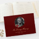 Elegant personlig Red blommigt begravning fotogäst bok med röd ros som lägger ett foto från guld ram mot en röd bakgrund. Anpassa enkelt onlinen.