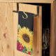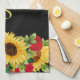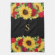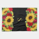 Vackra kökshanddukar som är dekorerade med vackra, elegant röd ros och gult solblommor på svart bakgrund. Anpassad med ditt monogram/initialt.