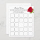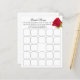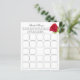 Lägg till lite roligt och elegans i möhippan med det här vackra Bingo-spelet med röd ros-temat Möhippa! Gästerna kommer att kunna fylla i bladen med gåvor som de tänkor den blivande briden att ta emot och avmarkera fyrkanten när gåvorna öppnas. De första som får fem i rad och skriker "Bingo!" vinner. Det här spelkortets minimalistiska utformning och det fantastiska röd ros-grafikkortet gör det till en perfekt utöver alla sofistikerade möhippa firande. Gör din möhippa oförglömlig med det här fina och interaktiva spelet!