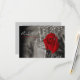 Ett vackert, klassiskt bröllop OSA-kort med ett enda röd ros i en bouquet tillsammans med baby utandning, mot en mjuk svartvitt och vit varm bakgrund, där ro är den enda färgaden inslag. Den här designen matchar min Elegant Röd ros Fade Out to Black and White bröllopsinbjudningar som finns i min butik Bröllop.