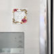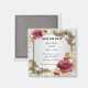 Nätt röd ros och bladguldmönsterram. Denna härliga spara datum magneter är en snyggt, long - vara långt för att meddela din stora dag. Personifiera magneten, genom att ändra texten i de förutsatt att fälten. Du kan ändra stilsortsstil, storleksanpassa och färga.