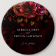 Elegant chic mörk röd burgundi och svart blommigt i bröllop. Lägg till ett pekfinger av romantik och drama i bröllop med den här eleganten röd och svart blommigt. Med en moody och sofistikerad utformning med djupa röd ros, burgundformade riker och mörk bladverk, exuderar den här knappen gotisk charm och tidlös elegans. Den förfinade typografin och den invecklade blommigten skapar en snyggt och ett klassiskt utseende, perfekt för brudens sida, gäster från bröllop eller som en keepsaké från din speciella dag. Oavsett om den används som bröllopsförmån, tillbehör eller dekorativt inslag, kompletterar den här knappen på ett vackert sätt ett romantiskt, vintage eller moody bröllop tema.