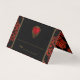 Röda, svarta och guldbröllopsbordskort med rikt rödt satin hjärta och röd svart och guld damask bakgrund. Använd helt enkelt en penna som skriver med guld eller vit bläck för att lägga till din evenemangs information till dessa eleganta röda, svarta och guld bröllopsbordskort.