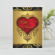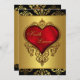 Rik gyllene damast med röda hjärtan elegant röd svart och guld bröllopsinbjudan.