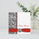 Snygg röd zebrarandom tie röd zebra baby shower-inbjudan. Denna eleganta röda zebran baby shower-inbjudan mall är lätt att anpassa för ditt evenemang genom att helt enkelt välja "Anpassa!" -knappen för att börja lägga till dina evenemangsuppgifter, typsnitt, teckenstorlek och färg samt formulering. Observera att alla de klistermärken, kort och inbjudningsdesign du hittar på Zazzle är tryckta grafik med inga faktiska juveler, band, upphöjda, präglade eller tillagda delar eller bitar.