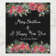 Elegant Röda julblommor Black Background Vin-etikett. Hälsning till jul och nyår.
