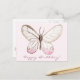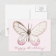 NyParkLane - Enkel men elegant vykort, med en skammens rosa och beige akvarellfjäril, mot en skammens rosa bakgrund, och med "Grattis på födelsedagen" -önskan i elegant typsnitt.
