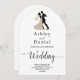 Den här elegantens svartvita bröllopsinbjudan är perfekt för ett modernt bröllop. Den enkla designen har svartfärgad kalligrafi och en illustration av elegant och groom på en ren vit bakgrund. Inbjudningskortet innehåller information om bröllop på baksidan i stället för att betala ett separat visitkort.