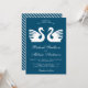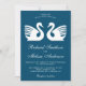 Akta dina gäster med den här moderna bröllopsinbjudan med vacker vit svanar mot blå bakgrund. Lägg bara till din händelseinformation i den här mallen som är enkel att använda för att göra den till en inbjudan av typen en. Vänd kortet över för att visa ett blått och vitt rand mönster på baksidan av kortet.