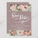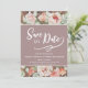 Meddela din speciella dag med detta vackert designade Spara datumkortet. Med delikata blommigtar i mjuk, romantisk nyans och elegant-skripttypografi anger det här kortet tonen för ett tidlöst och sofistikerat firande. Perfekt för bröllop med ett klassiskt tema eller trädgårdstema.