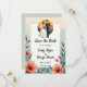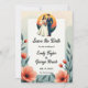 Den här blommigten med elegant vattenfärg sparar datumet inbjudan är perfekt för ett modernt bröllop. Den romantiska designen har en elegant vattenfärgsbild i ram med en blommigt med brud- och groombild och svart kalligrafi på vit bakgrund.