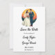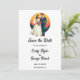 Den här blommigten med elegant vattenfärg sparar datumet inbjudan är perfekt för ett modernt bröllop. Den romantiska designen har en elegant vattenfärgsbild i ram med en blommigt med brud- och groombild och svart kalligrafi på vit bakgrund.