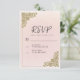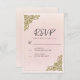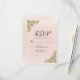 Den här romantiska OSA kort har en mjuk vattenfärgsbakgrund i rosa med hörnblomning i elegant guld och ett modernt skripthuvud. Blandningen av flytande kalligrafi- och klassisk serif-text skapar en vackert tidlös layout, perfekt för vår, sommar- eller trädgårdsbröllop. Gäster kan enkelt svara med de inkluderade alternativen "Accepts with Pleasure" och "Declines with Regret". Det här kortet är designat att samordna med vår Vintage inbjudningssvit och ger dig en mjuk, feminin beröring till bröllop-skrivbordet.