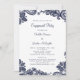 Elegant romantisk blommönstrad slöja förlovningsfest inbjudan design har en krispig vit bakgrund med utsmyckad marinblå falsk slöja i hörnen på baksidan och framsidan. Anpassa designen med dina detaljer i trendig stil och script i klassisk marinblå. Baksidan matchar i trendig marinblå. För bästa resultat, ersätt mall detaljer med dina egna detaljer och lämna utrymme mellan stycken som i exemplet. E-post invitationsuites@gmail.com med frågor eller anpassade färgförfrågningar.
