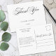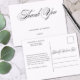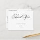 Det här enkla och eleganta svarta och vita bröllopskortet med tackmeddelande har en minimalistisk layout som kombinerar rolig och lekfull, klassisk typsnittsstil och klassiska serif-teckensnitt i svart på en ren vit bakgrund för en modern men tidlös design med vintageflair. Texten "Tack" är skriven på framsidan med en romantisk handskriven kalligrafiskrift med lekfulla utsmyckningar och med anpassningsbara namn och datum nedan i populär serif-typografi. Baksidan innehåller anpassningsbara namn, returadress och meddelandetext. Du kan redigera texten i produktmallen för att anpassa den här produkten för ditt eget bröllop.