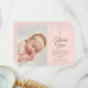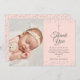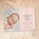 Elegant Rosa Baptism Silver Hearts Photo Tack Kort