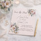 Elegant rosa, blå och krämfärgad blomsterbröllop spara datumet
