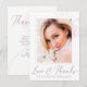 Skicka denna moderna fototackkortet till din familj och vänner för din bröllopsfest. Denna eleganta designmall har ditt foto på framsidan med en tunn dammrosaram med vattenfärg körsbärsblommor i nyanser av rosafärgad. Nedan i en handskriven skrift står "Kärlek & Tacksamhet" med ditt namn nedan för att anpassa. Baksidan av kortet har ditt tackmeddelande med en mjuk vattenfärg körsbärsblomma under texten. Anpassa ditt tackmeddelande och signatur. Designad av konstnären ©Susan Coffey.