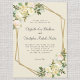 Elegant bröllopsinbjudan med romantiska bröllopsrosor i akvarell, vit med inslag av rosafärgade nyanser, visas i grönska på en äggskalsfärgad bakgrund. En chic, glänsande gyllene geometrisk kristallformad ram fullbordar den moderna designen medan traditionell, klassisk formulering ger tidlös sofistikation. Personifiera bröllopsdesignen med era detaljer i elegant, kolgrå bokstav och typsnitt. Baksidan av kortet är elegant äggskalsfärgad. Kontakta mig gärna på invitationsuites@gmail.com om ni har frågor angående denna eller någon av våra designer.