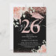 Chic tjejig rosa och roséguld examensfest inbjudan med pastellrosa akvarellblommor med suckulent grönska och falskt roséguld glitter. Den eleganta mallen är designad med svart bakgrund, så att de rosa blommorna verkligen sticker ut! Examensårtalet är prytt med examensmössa och texten 'examinerad' i elegant kalligrafi. Anpassa enkelt mallen med dina egna evenemangsuppgifter.