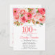 Elegant Rosa Blommigt 100:e födelsedag Inbjudan Vykort