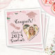 Skapa napkins för elegant rosa blommigt studenten för 2025-klassen, personlig med ett hjärtformfoto, student för- och efternamn, och händelsens år. Den här gigantiska utformningen har också en Gratulerar: att säga dekorerad med blommor från ljusa rosa ro och illustrationer av student och diplom. Ladda upp student-fotot, skriv namn och skriv in ett år om det inte är 2025 med hjälp av mallen före beställning.