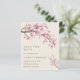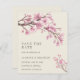 Med den tematiska budgeten för blommigt av elegant sparas det datum som innehåller en gren som består av blommor av färgsfärgad blommar av körsbär av rosa över den översta lämnat delen och i högernas hörn i grund, över en elfenbensbakgrund. Dina uppgifter om bröllop ligger i ett djupt brunt färg och i lämnat riktning. Denna chic är underbar för ett firande i vår.