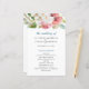 Elegant Rosa Blommigt Bröllopsprogram för vattenfä
